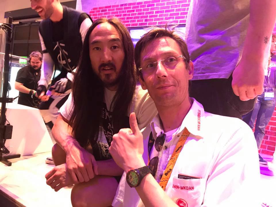 Hier ein foto mit mir und Steve Aoki auf der GAMESCOM, Steve Aoki wurde bereits zweimal für einen Grammy nominiert, Steve Aoki ist DJ und Produzent und Eigentümer von Team Rogue.