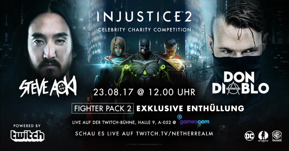 Warner Bros. Interactive Entertainment und DC Entertainment haben heute angekündigt, dass die Top DJs Steve Aoki und Don Diablo in Injustice 2 gegeneinander antreten werden. Steve Aoki wurde bereits zweimal für einen Grammy nominiert, ist DJ und Produzent – und Eigentümer von Team Rogue. Don Diablo ist ein weltweit bekannter Top-DJ und arbeitet regelmäßig mit Hitproduzenten wie Ed Sheeran, Rihanna und Coldplay zusammen. Der Celebrity-Wohltätigkeitswettbewerb findet während der Gamescom 2017 statt, am 23. August um 12:00 Uhr und ist ein Kampf bis zum bitteren Ende.