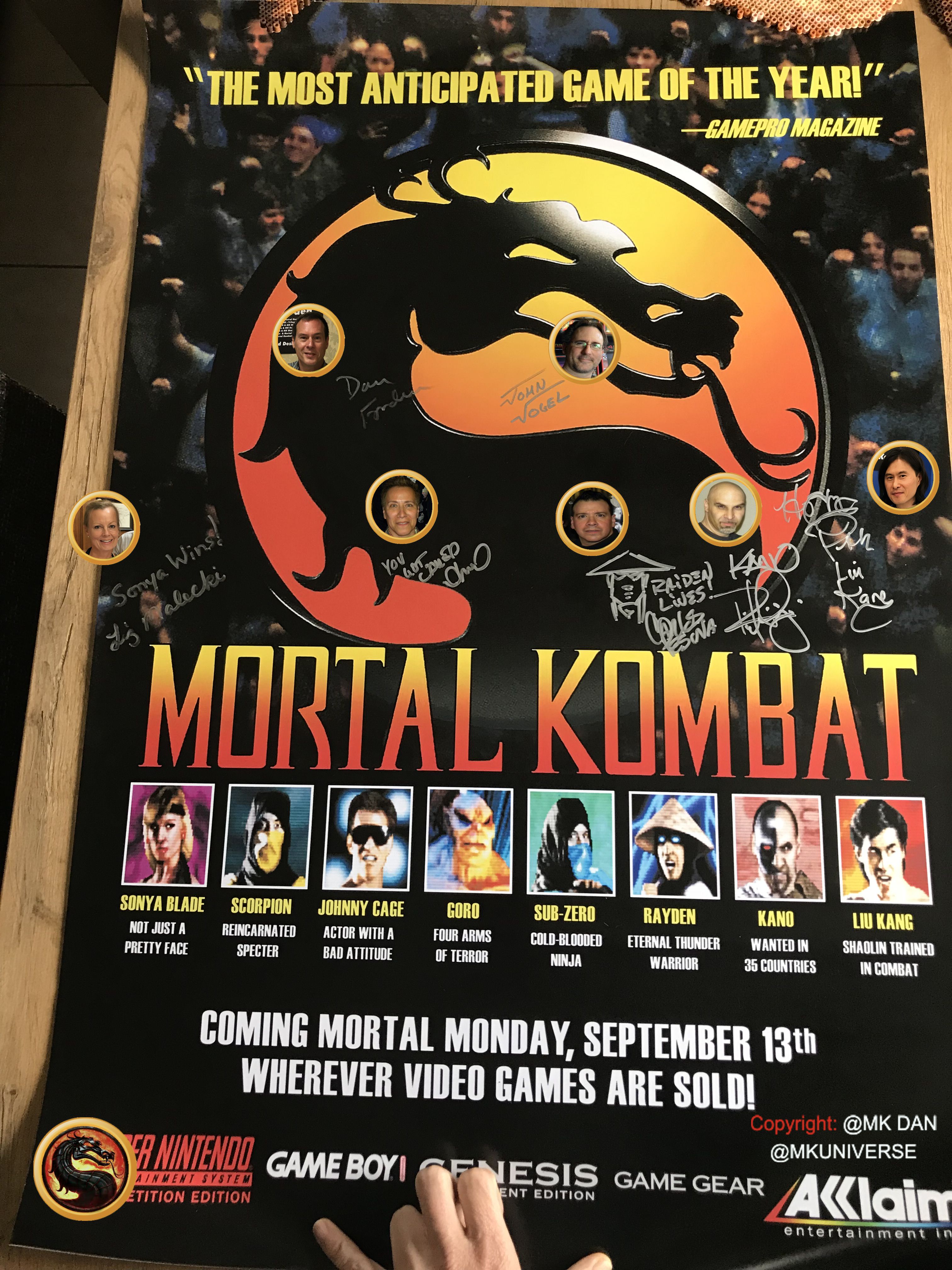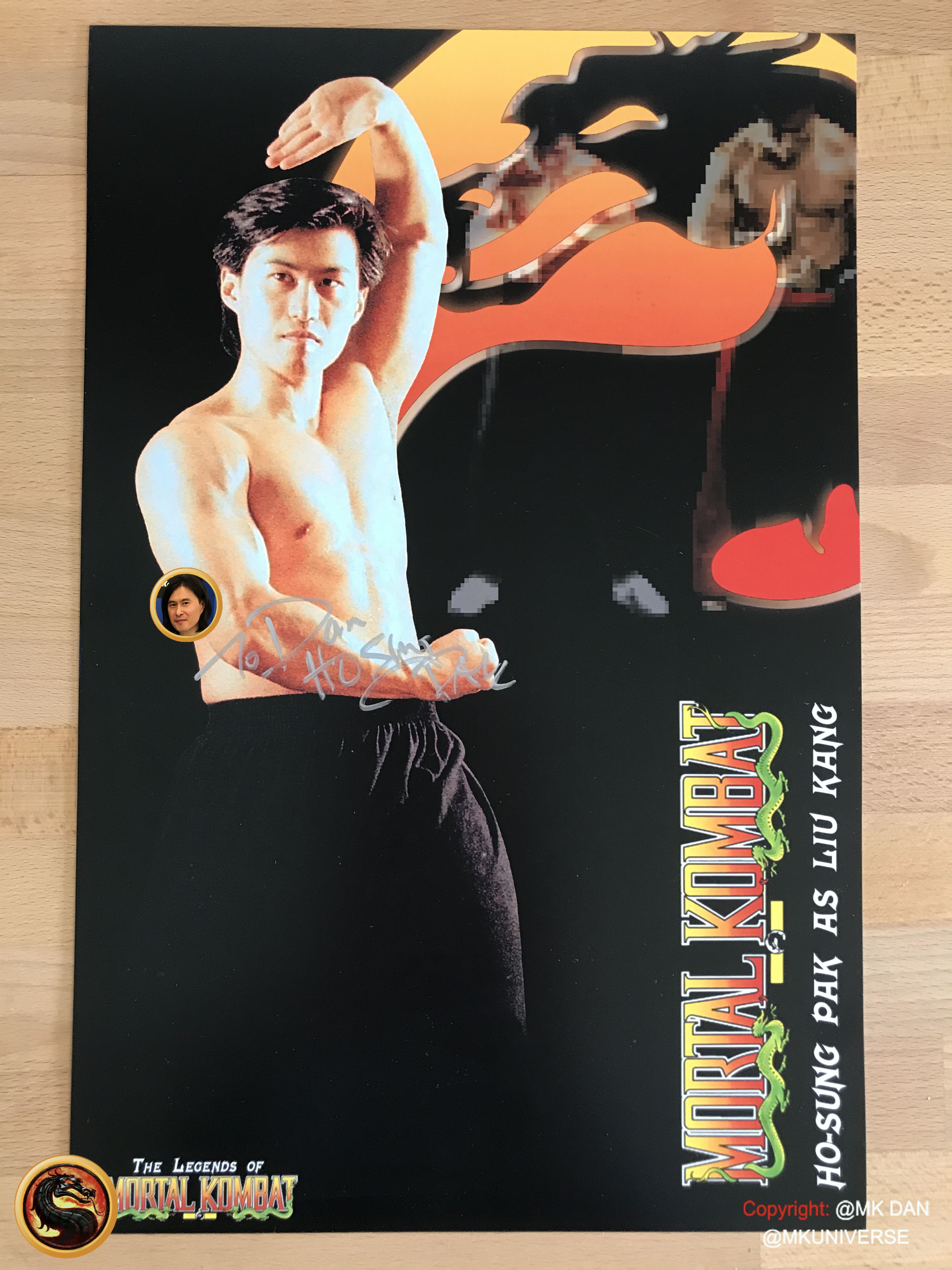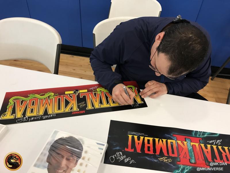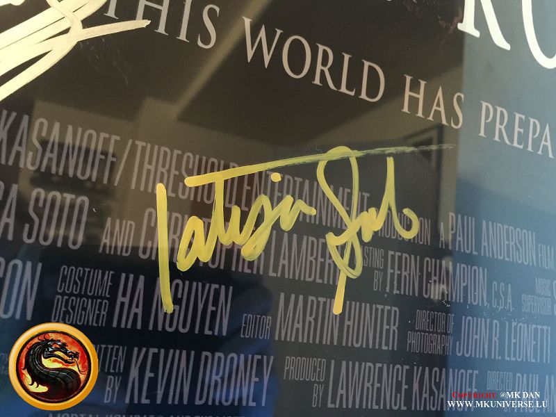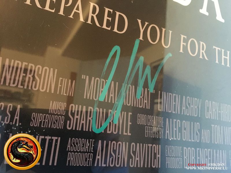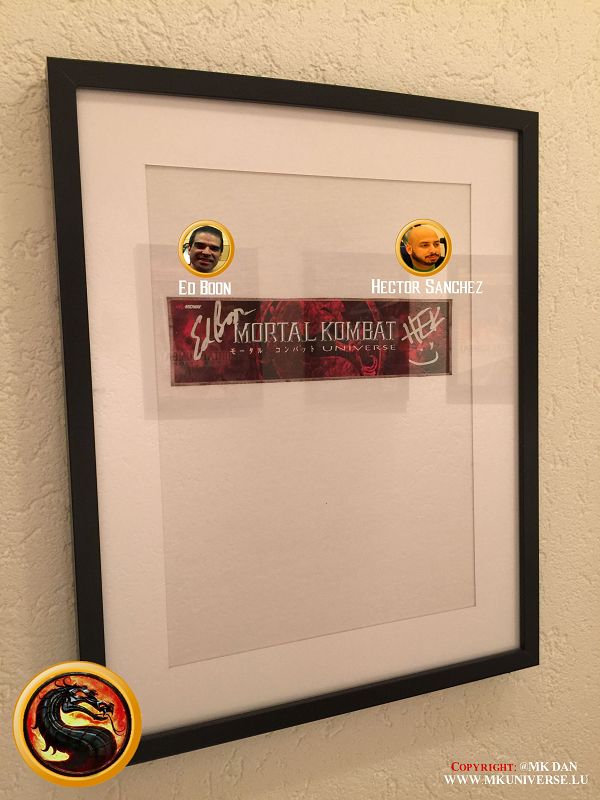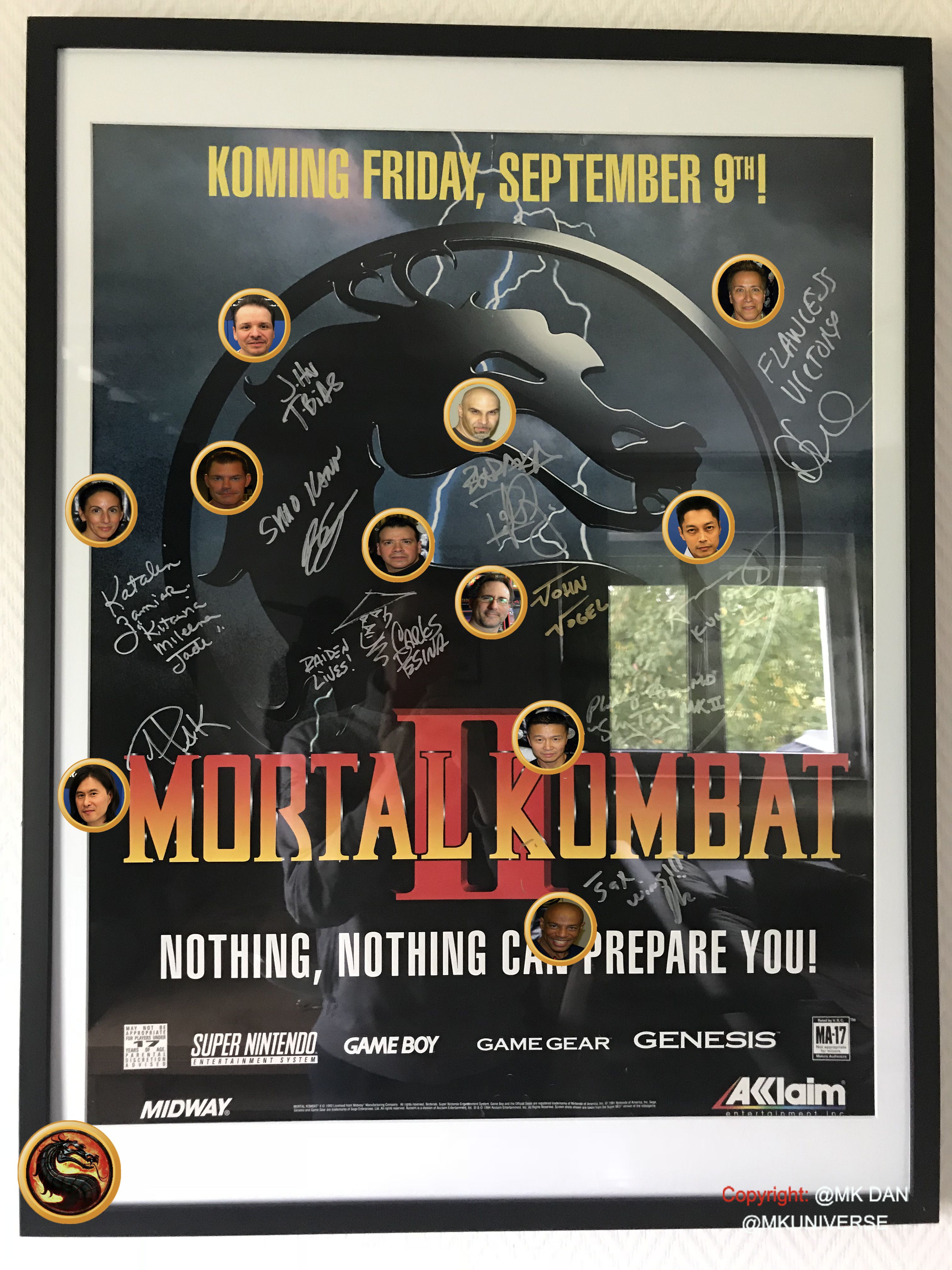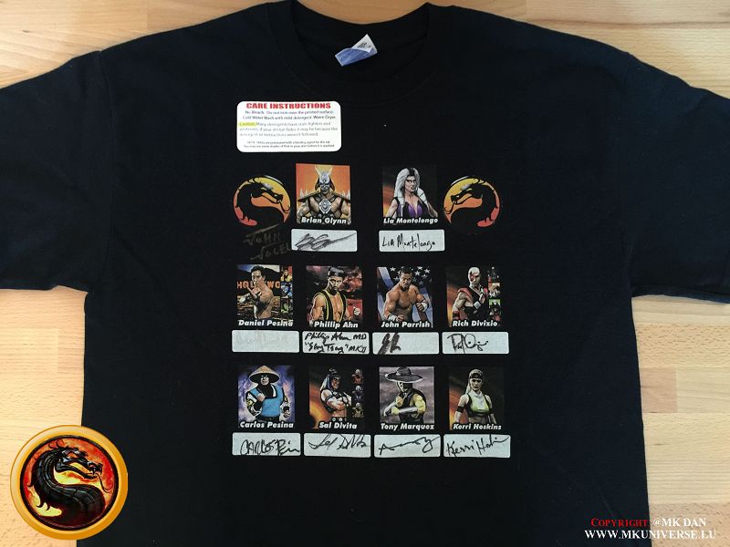Signiert von: Elisabeth Malecki (Sonya MK1), Daniel Pesina (Johnny Cage MK2), Ho Sung Pak (Liu Kang MK1), Carlos Pesina (Raiden MK2).