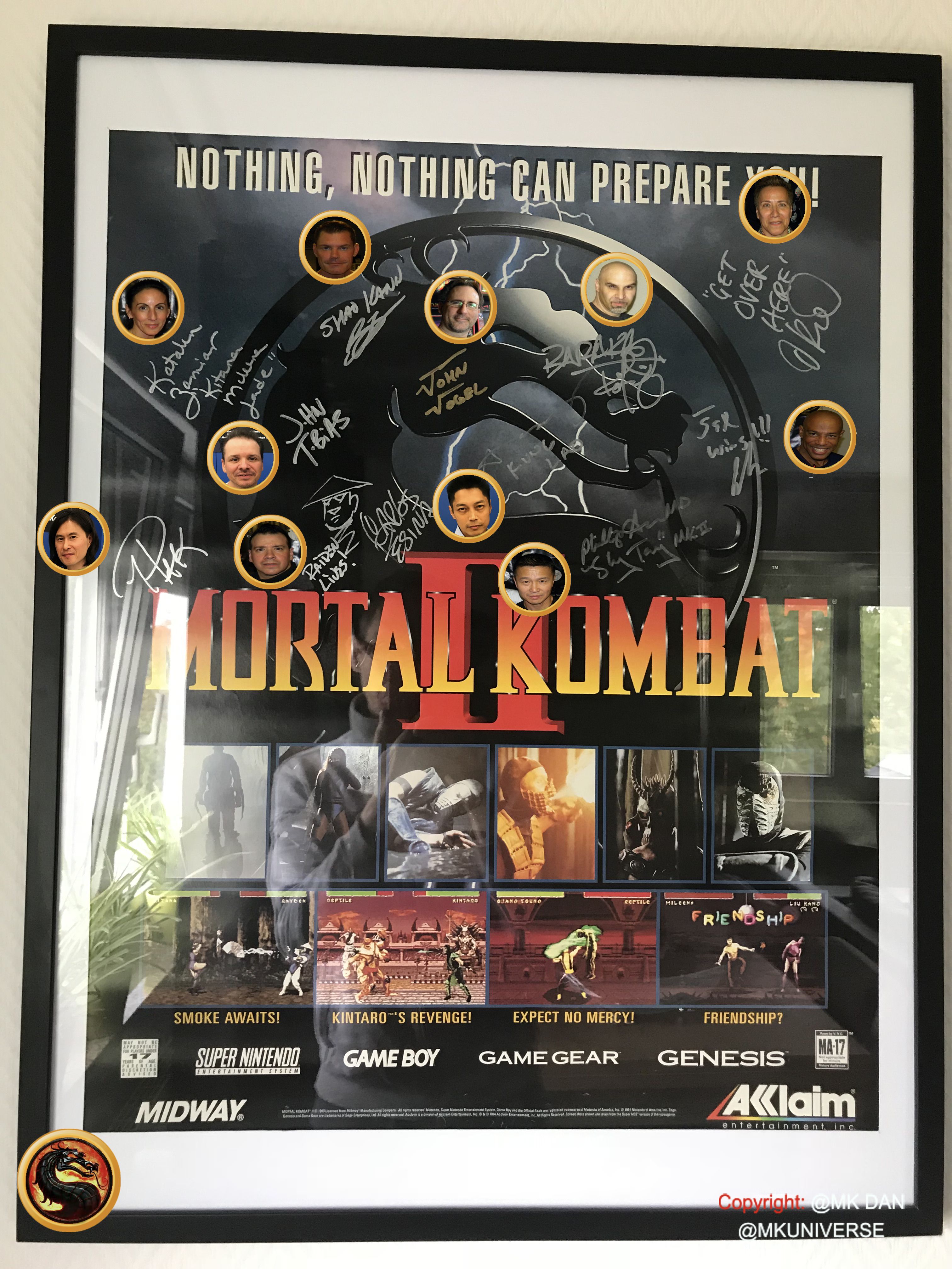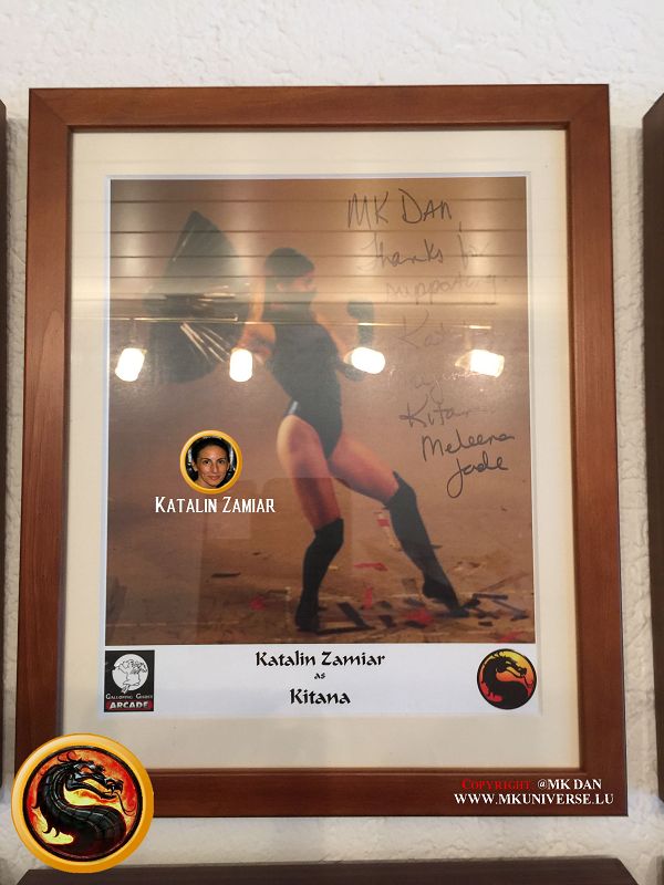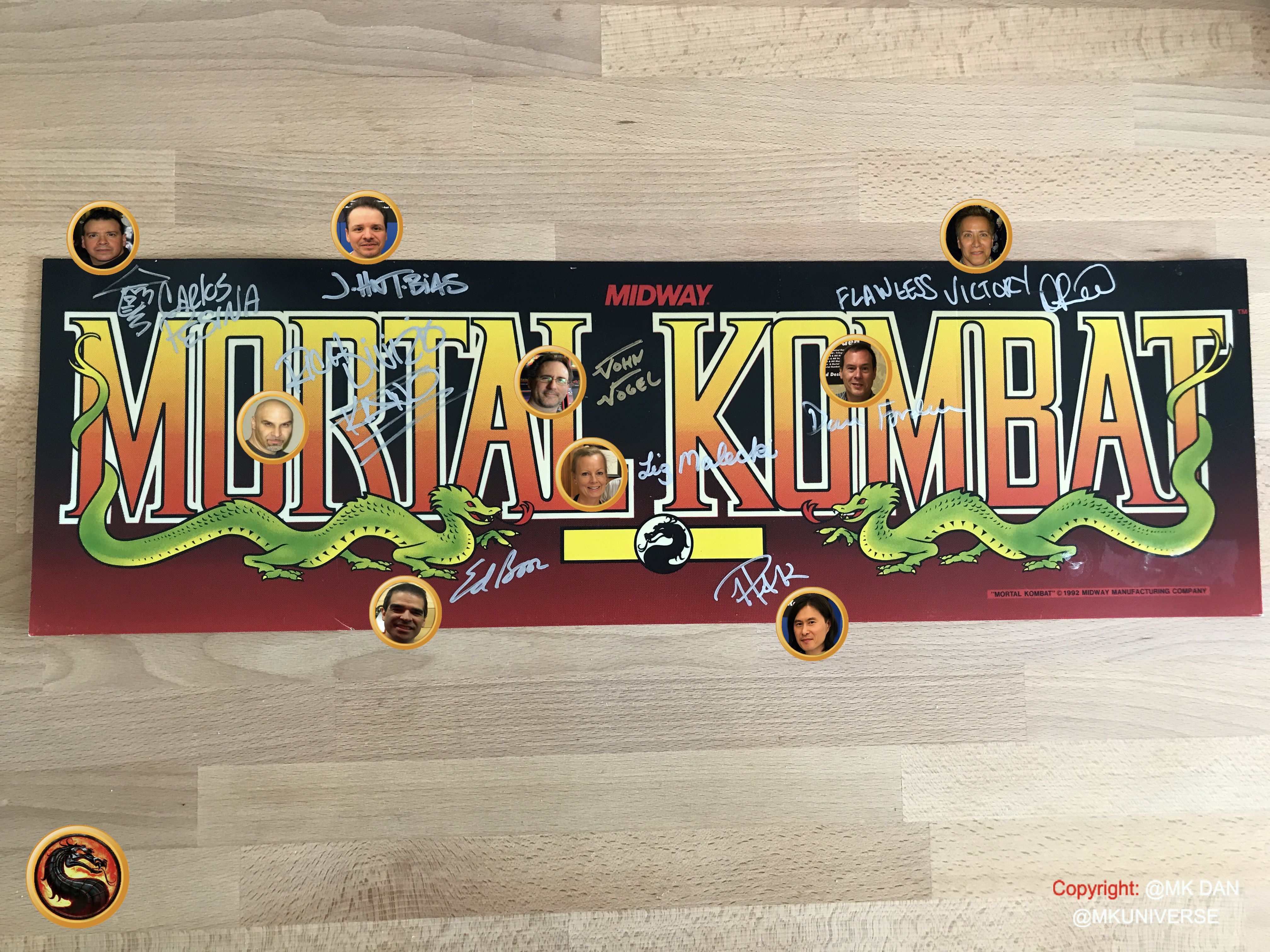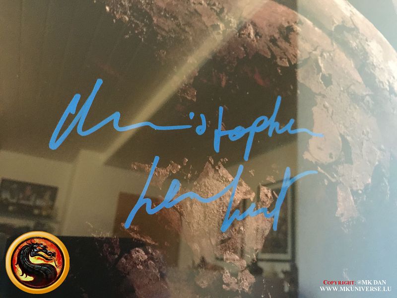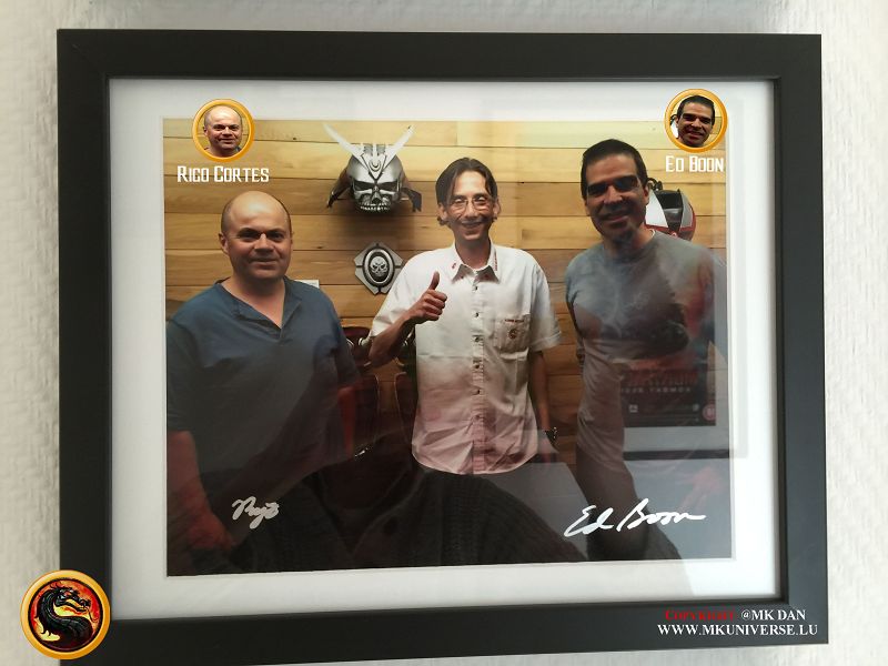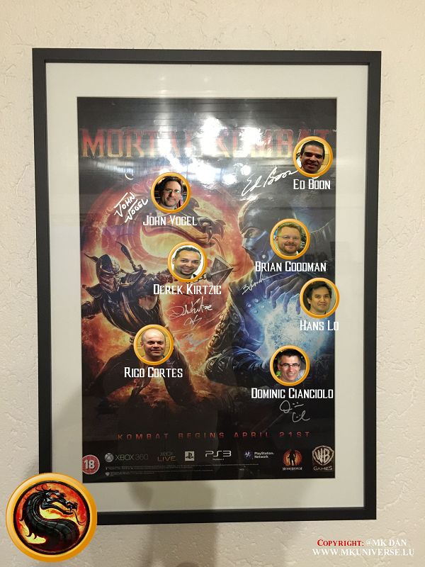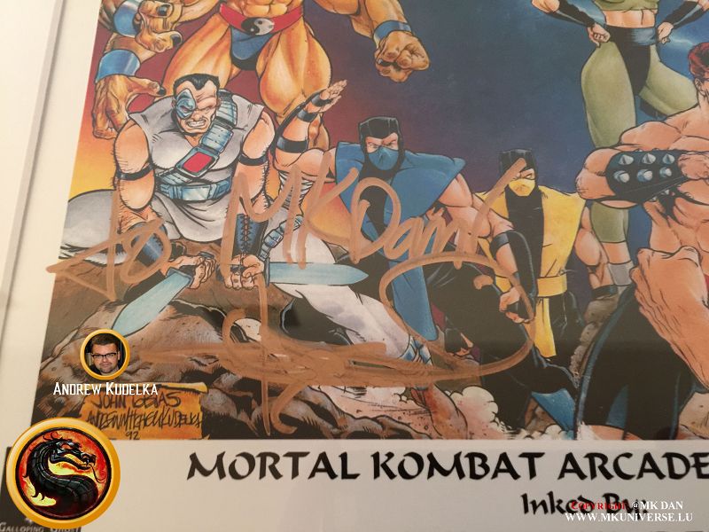 Signiert von: Elisabeth Malecki (Sonya MK1), Daniel Pesina (Johnny Cage MK2), Ho Sung Pak (Liu Kang MK1), Carlos Pesina (Raiden MK2).