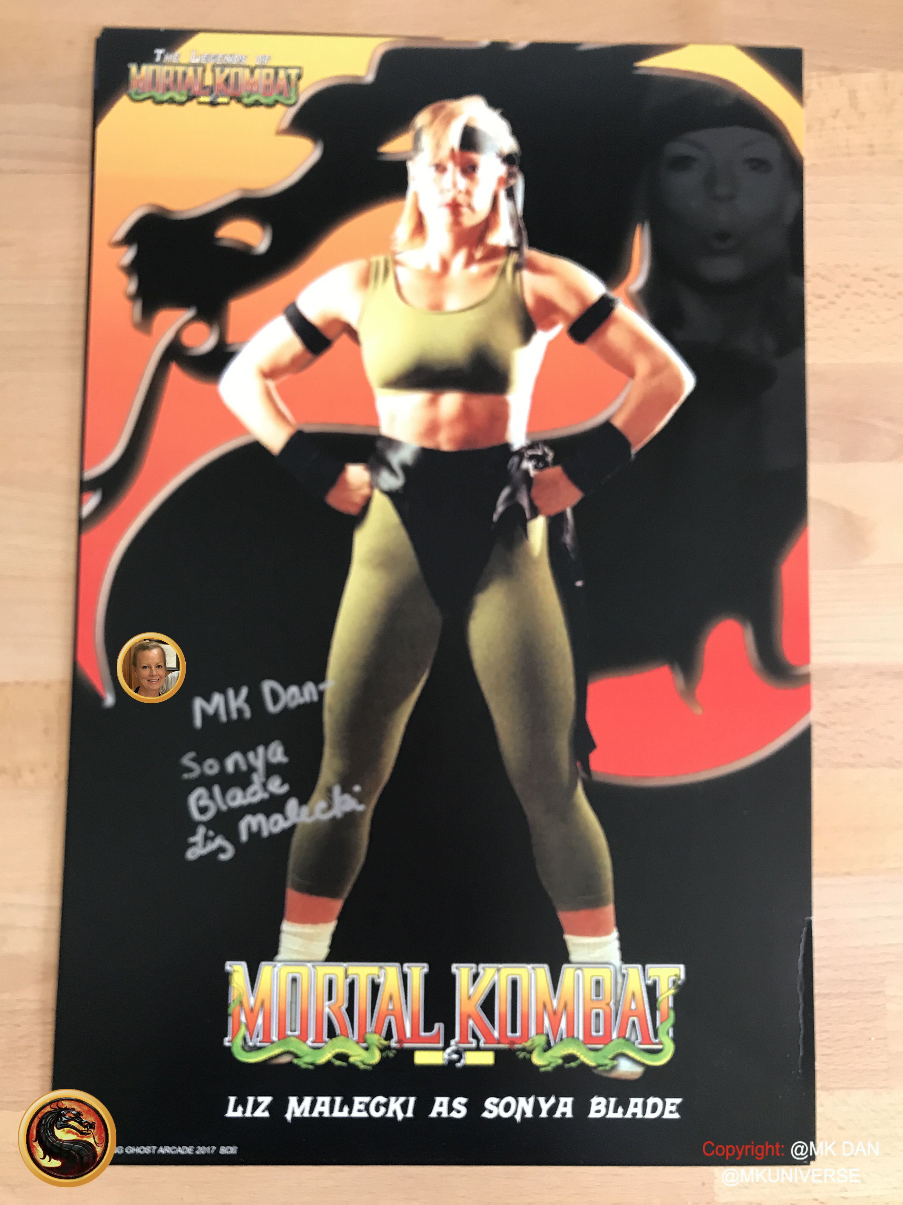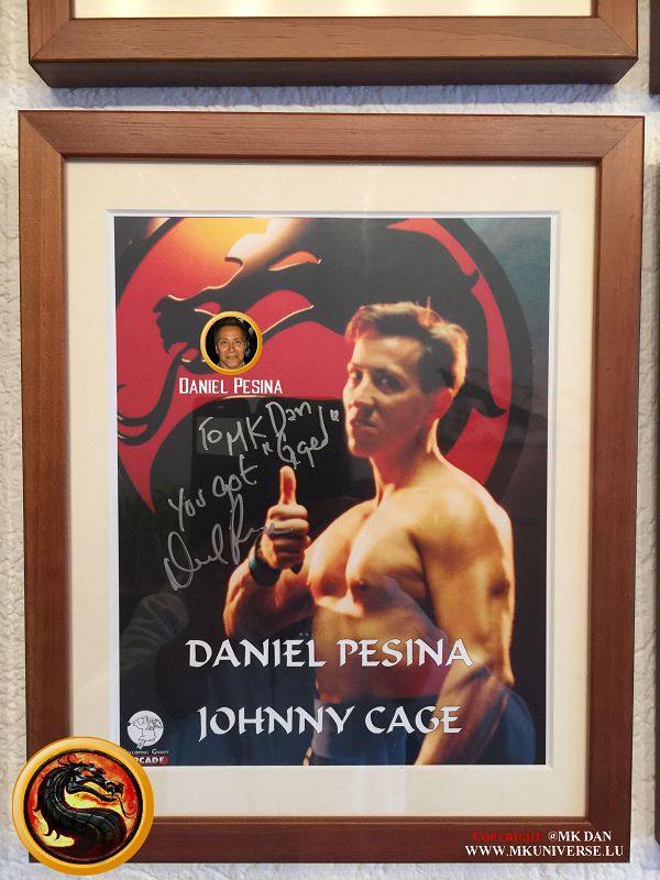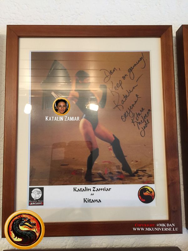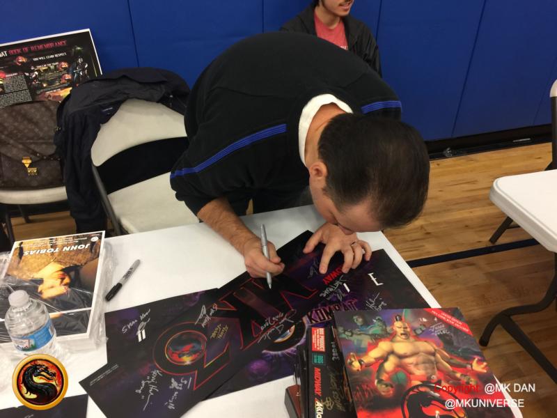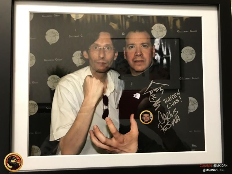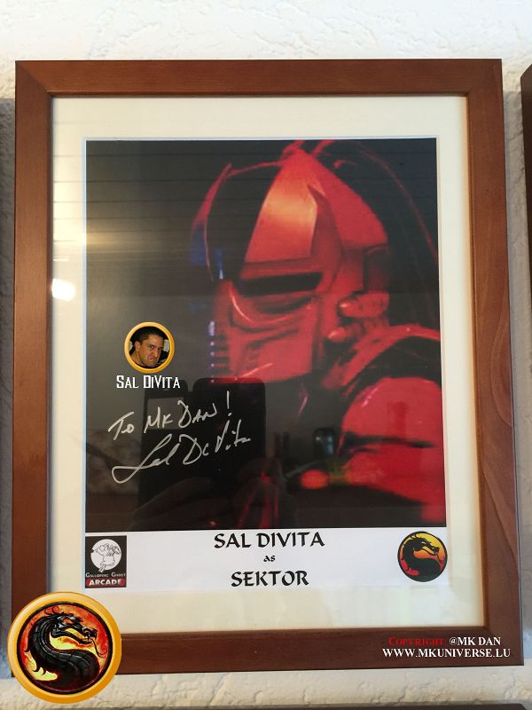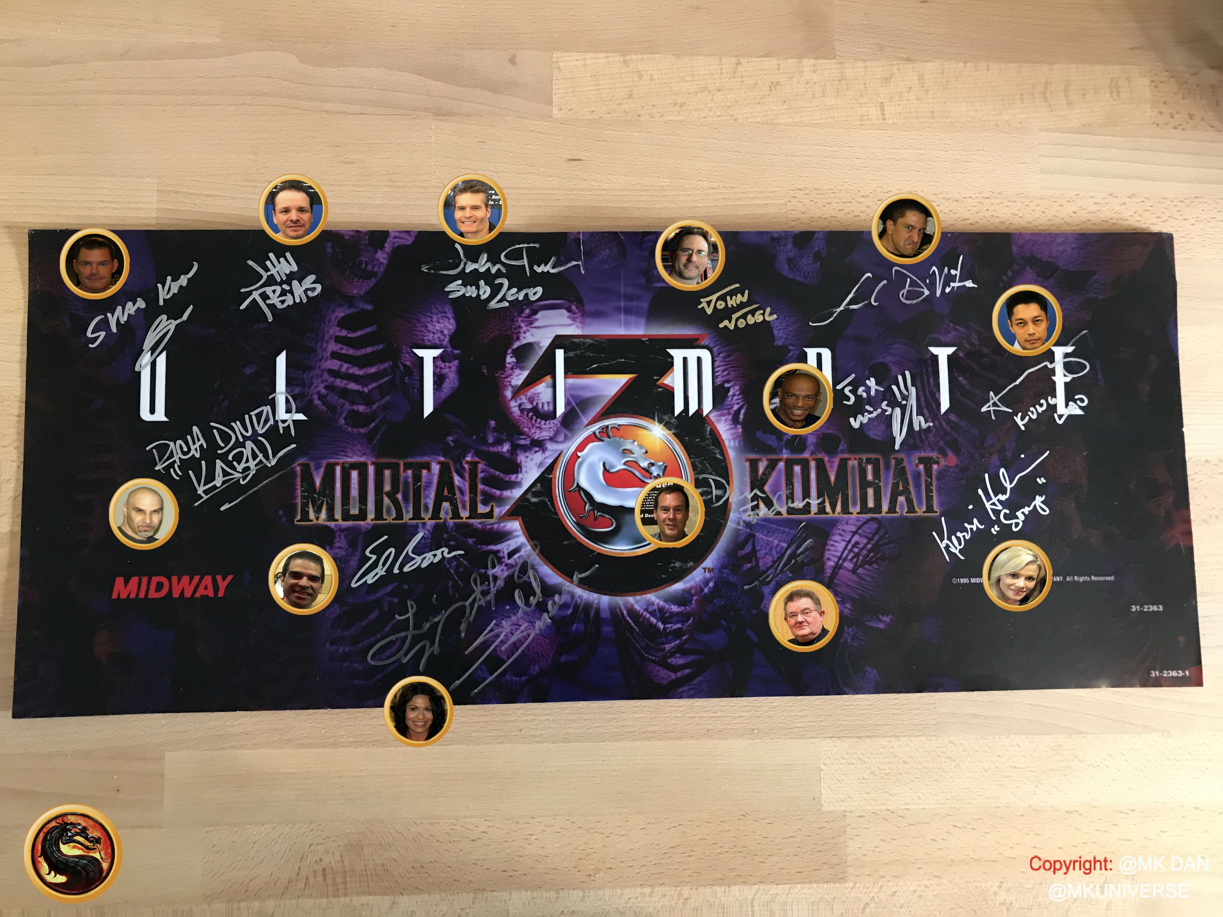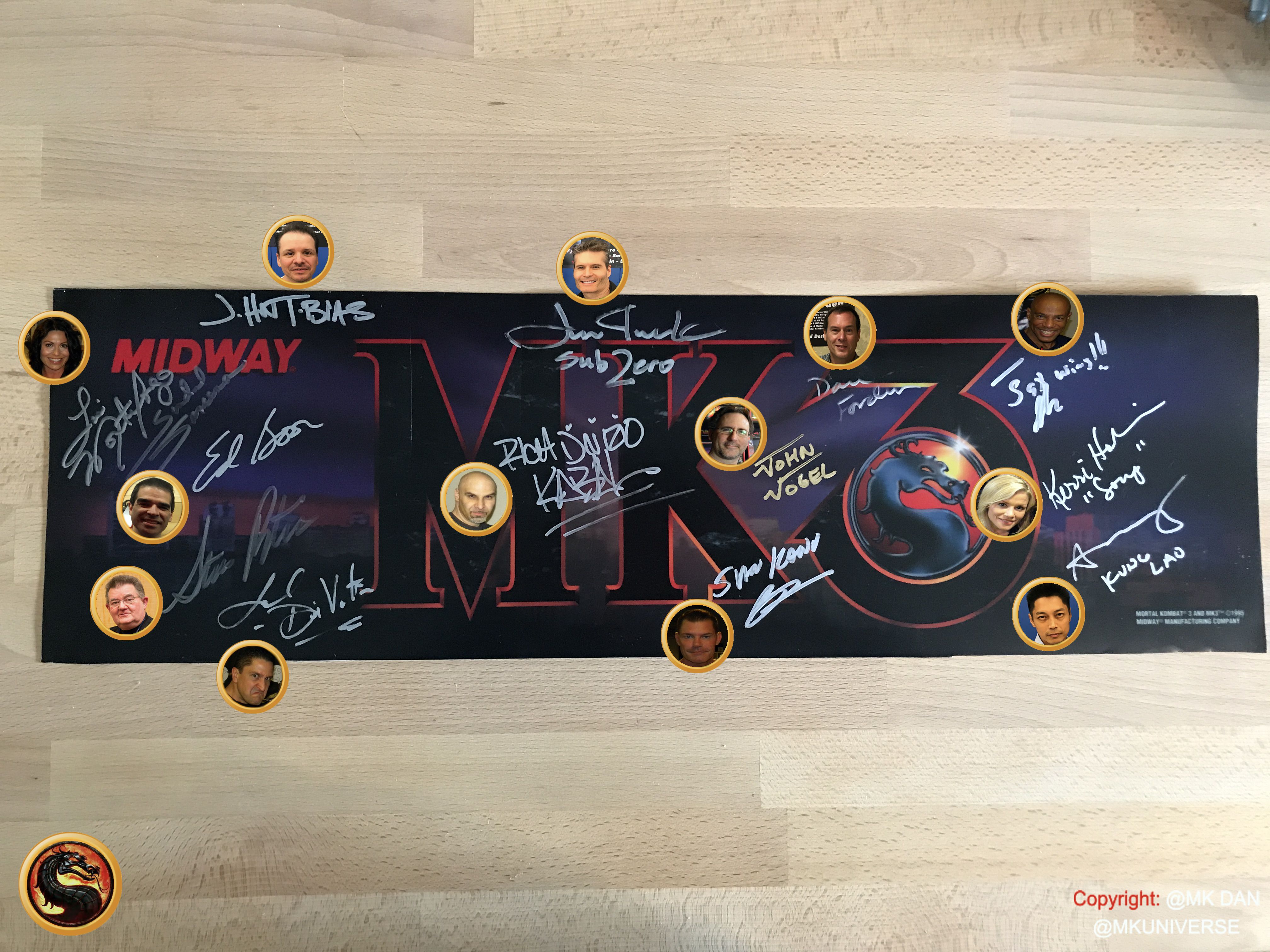 Signiert von: Elisabeth Malecki (Sonya MK1), Daniel Pesina (Johnny Cage MK2), Ho Sung Pak (Liu Kang MK1), Carlos Pesina (Raiden MK2).