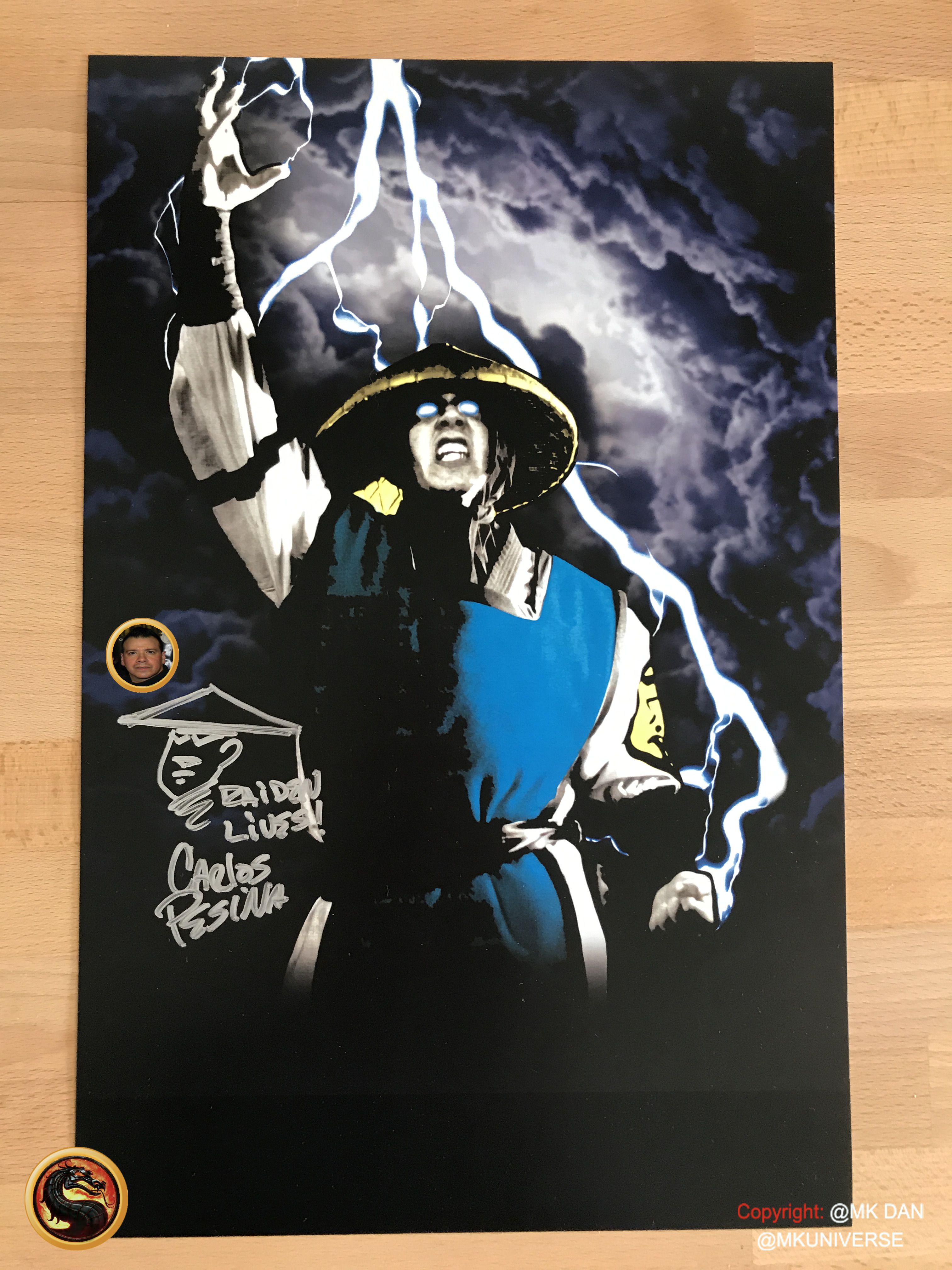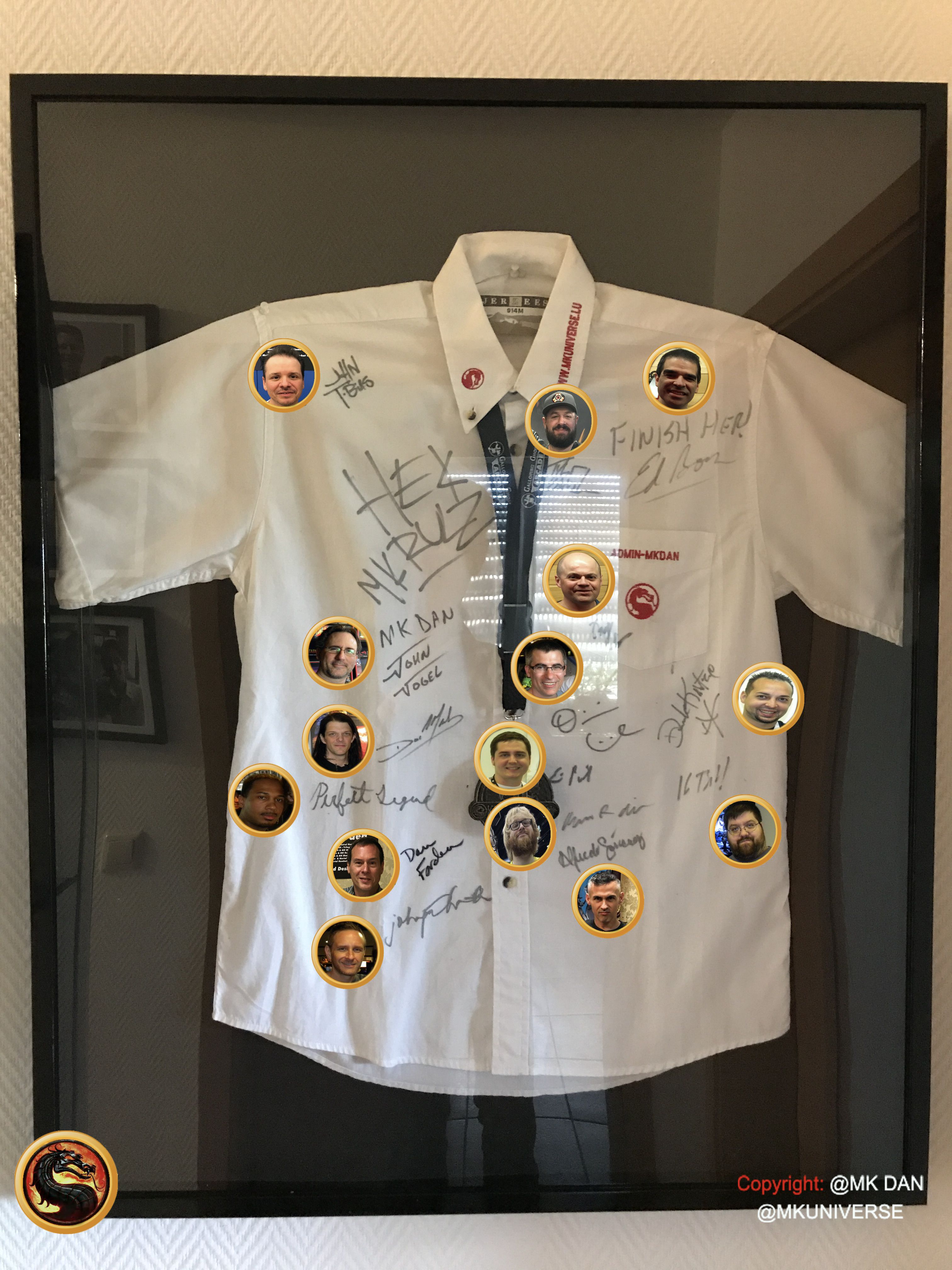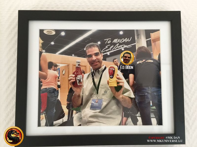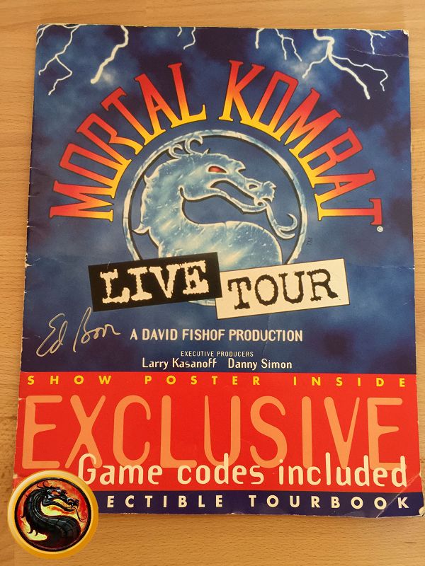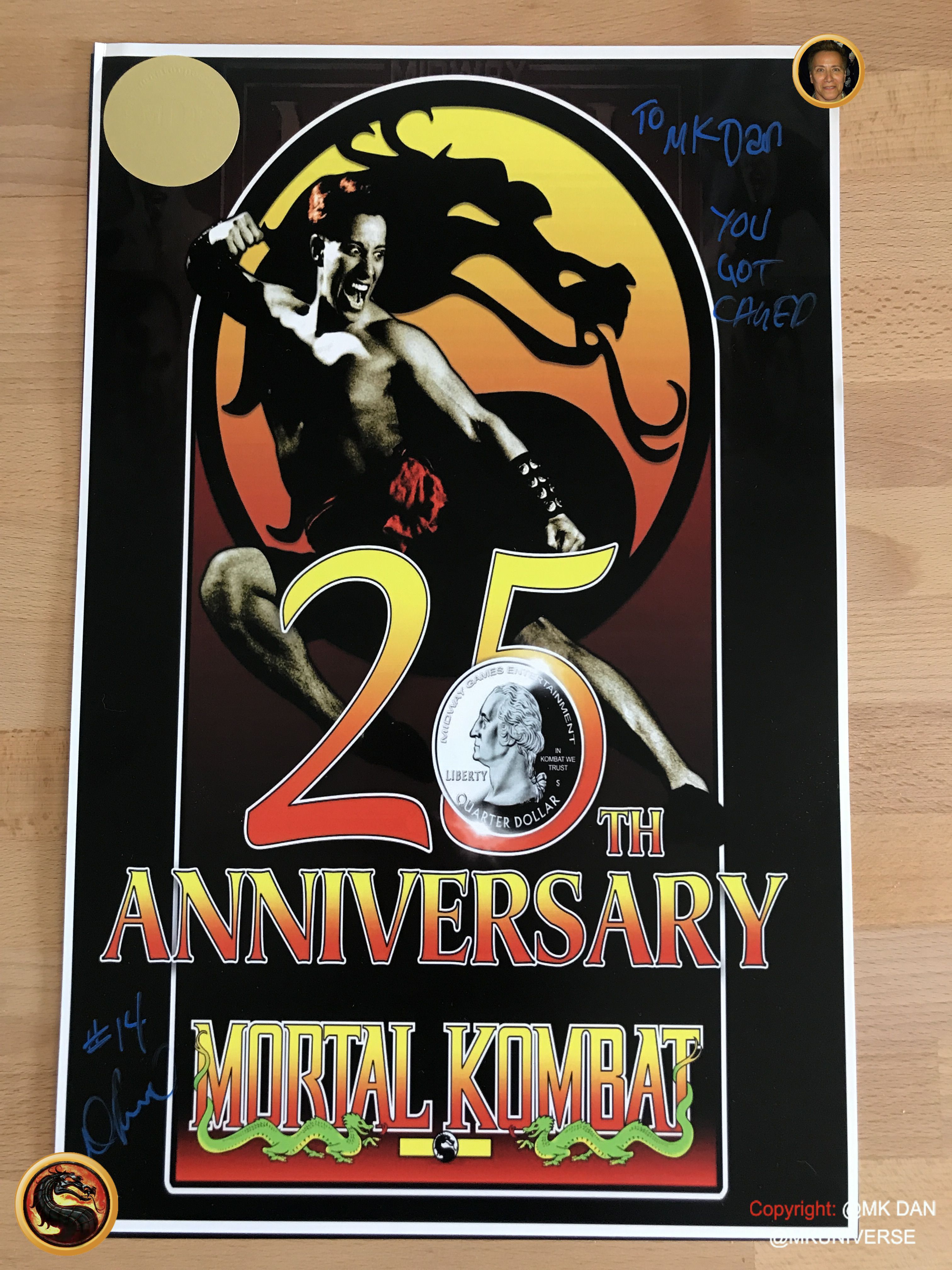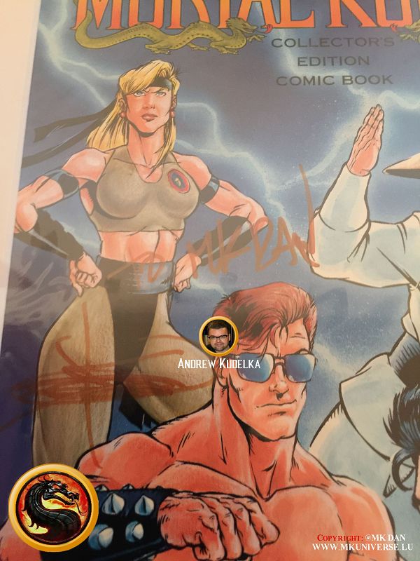 Signiert von: Elisabeth Malecki (Sonya MK1), Daniel Pesina (Johnny Cage MK2), Ho Sung Pak (Liu Kang MK1), Carlos Pesina (Raiden MK2).