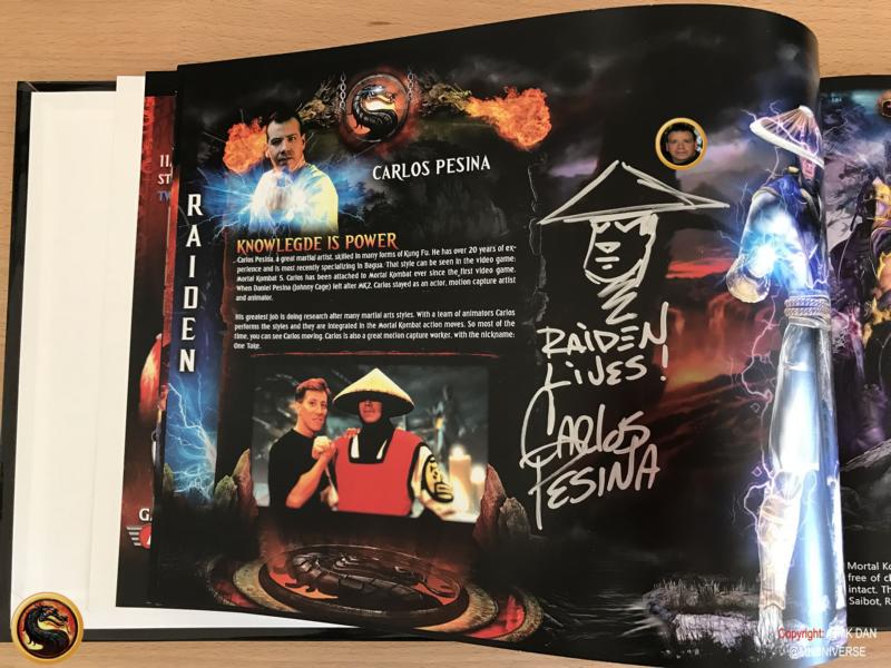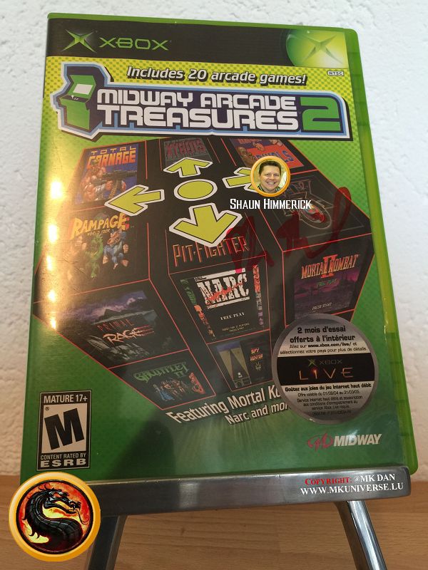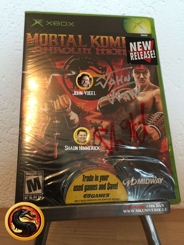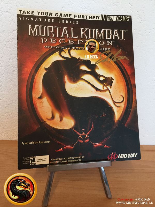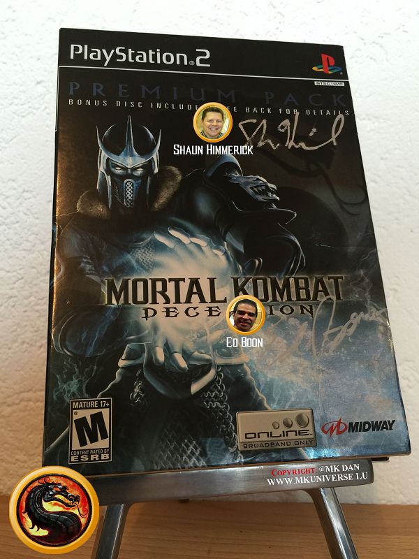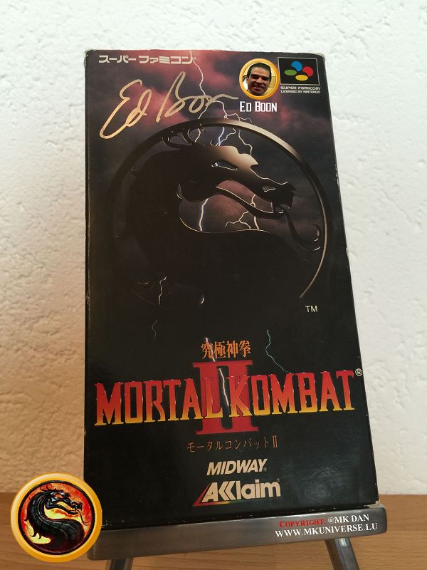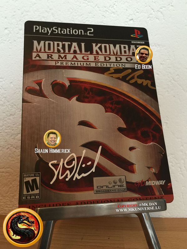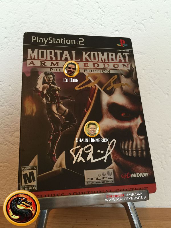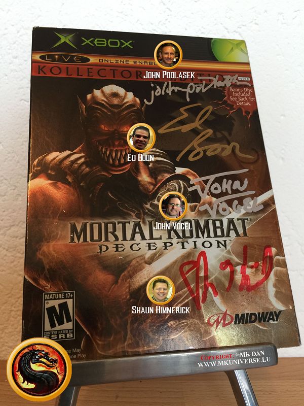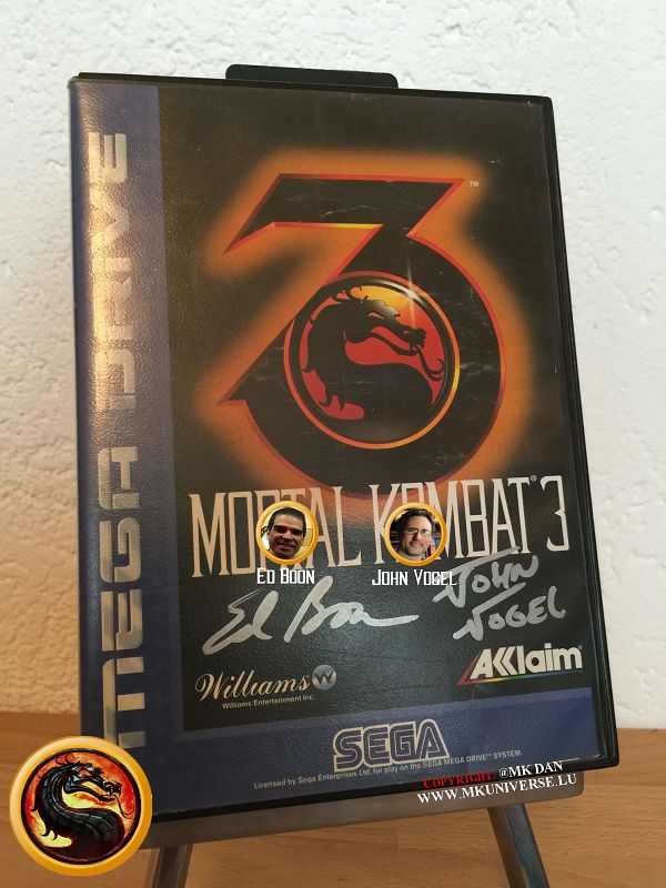 " MK & MK II ist "signiert" von: Ed Boon, John Tobias, John Vogel, Dan Forden, Carlos & Daniel Pesina, Richchard Divizio, Philip Ahn, John Parrish, Katalin Zamiar, Anthony Marquez, Brian Glynn, Ho-Sung Pak und Elisabeth Malecki."