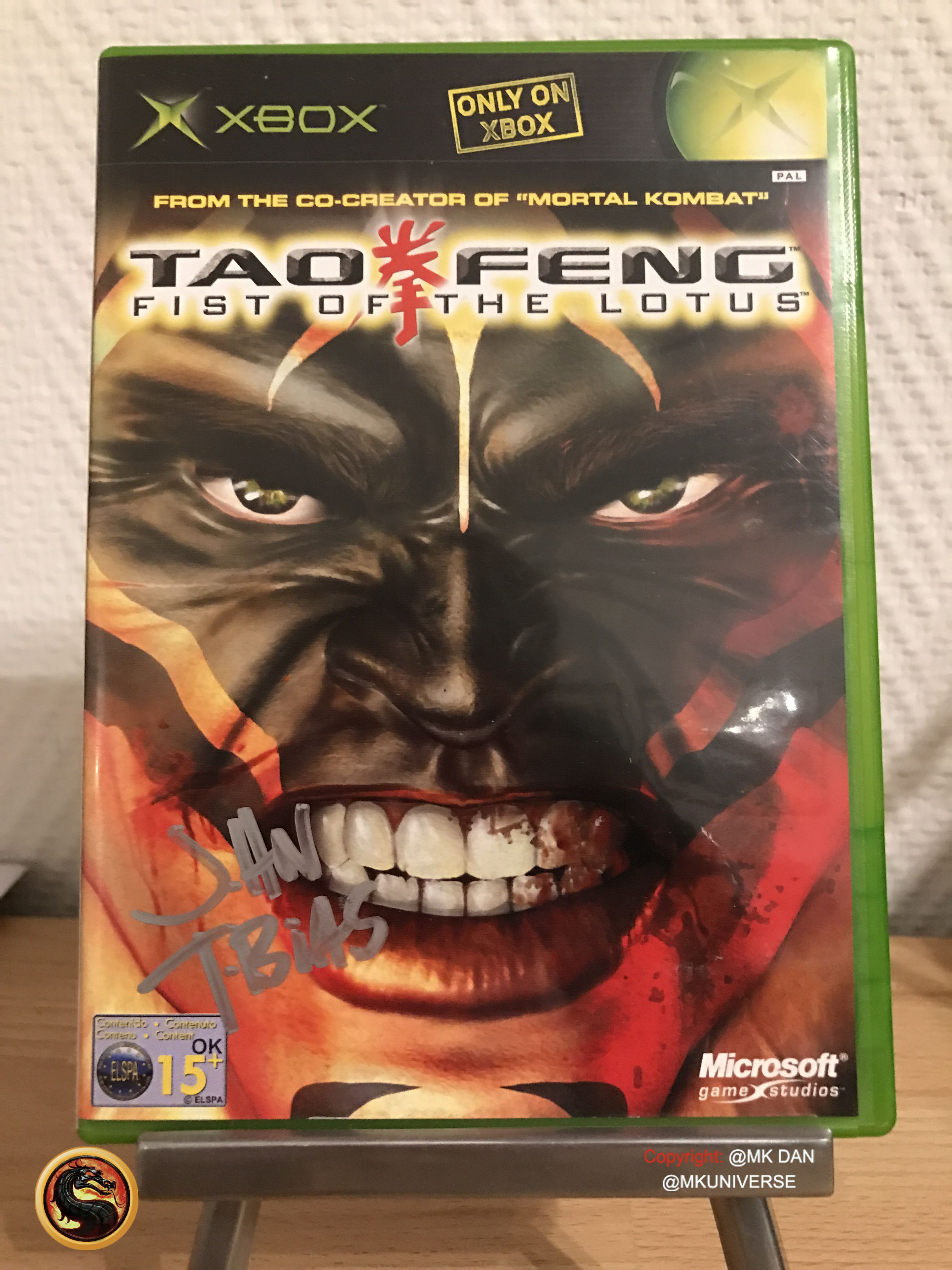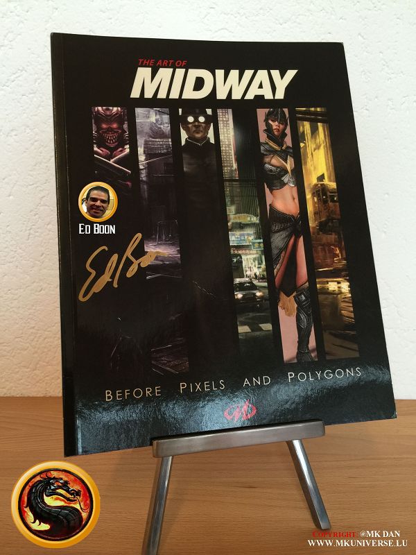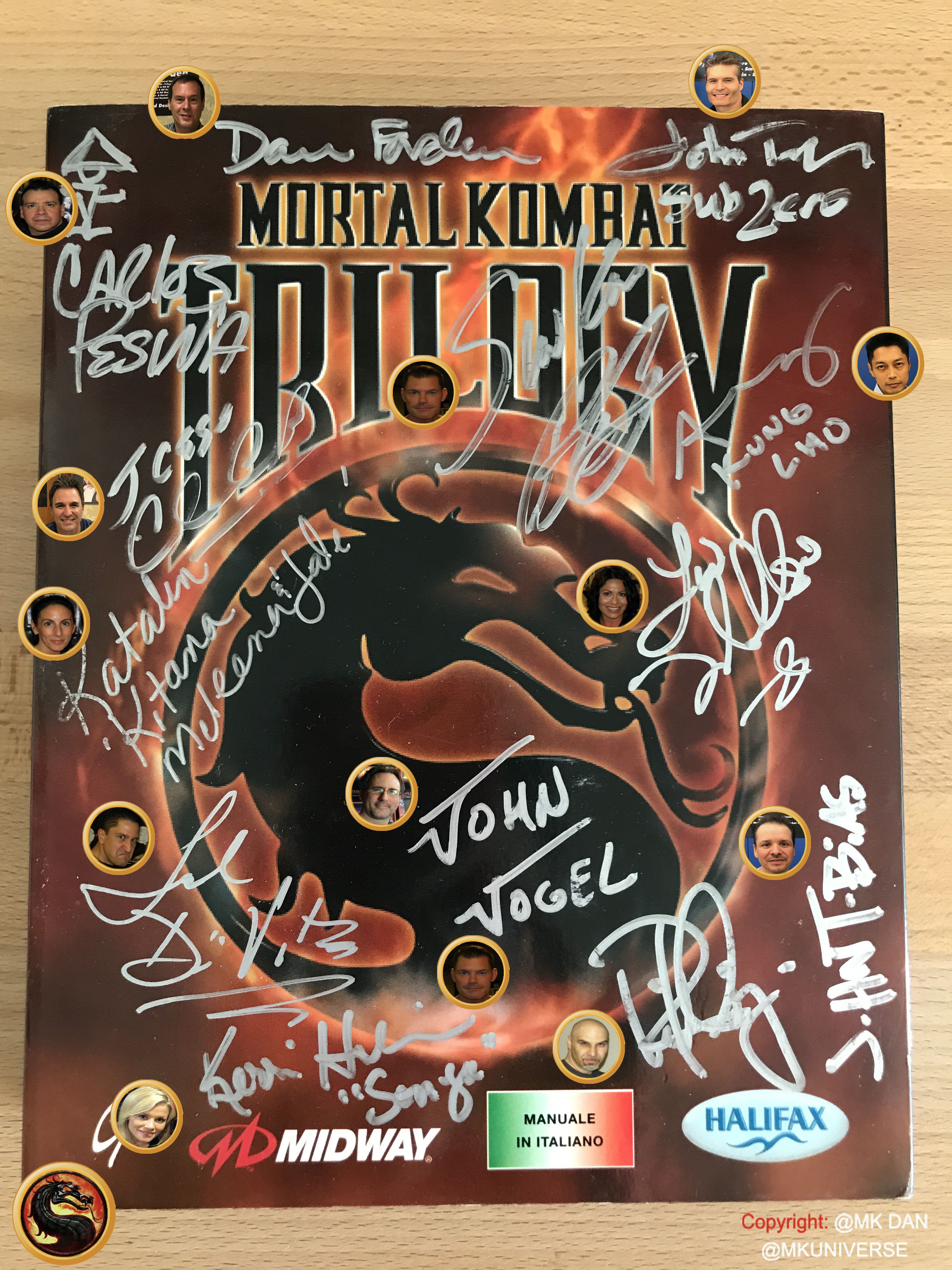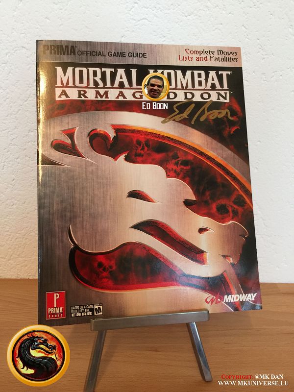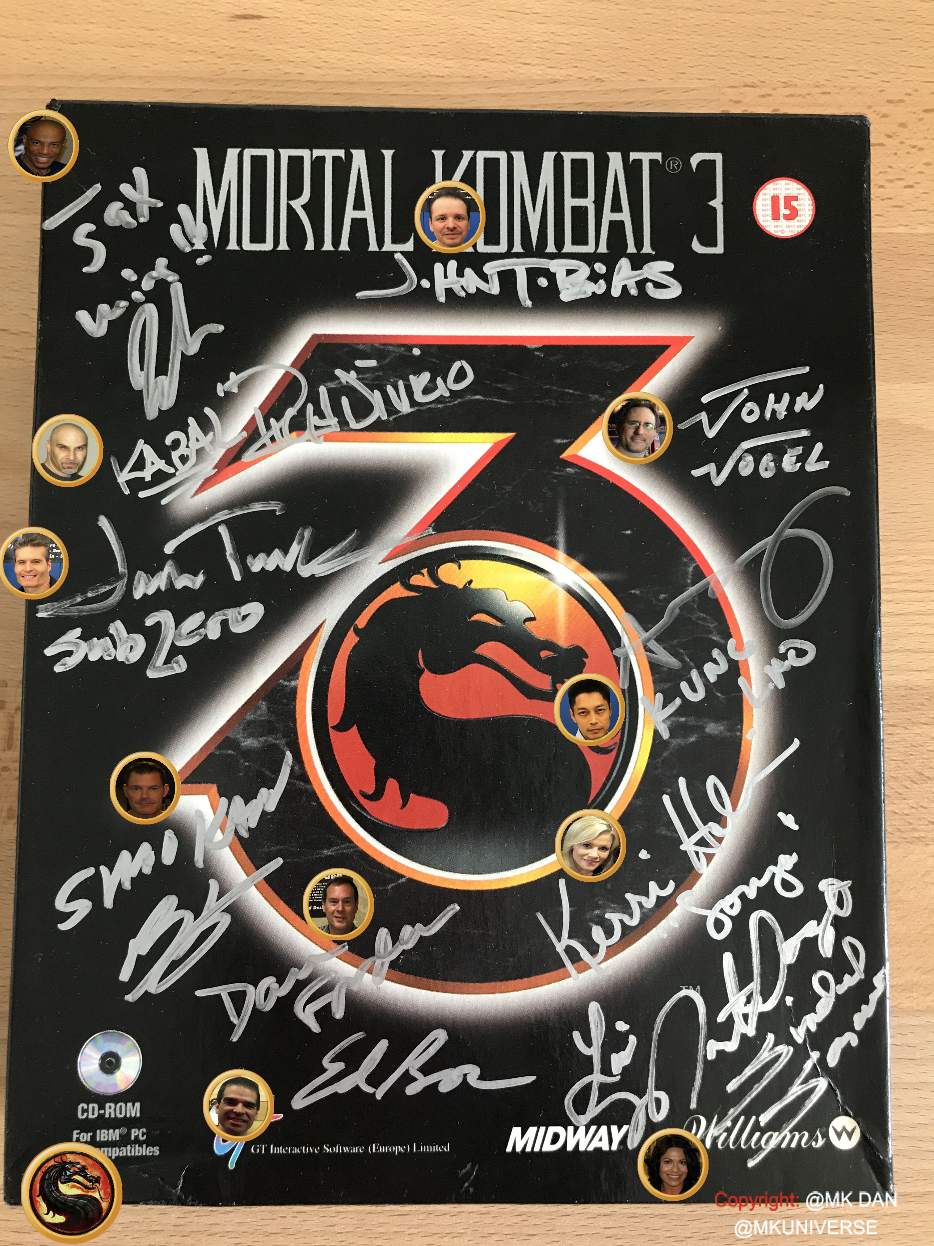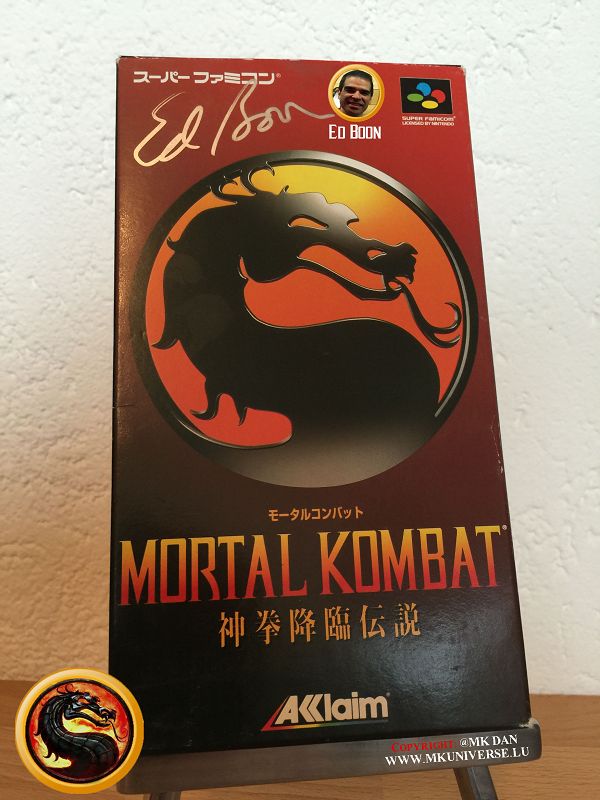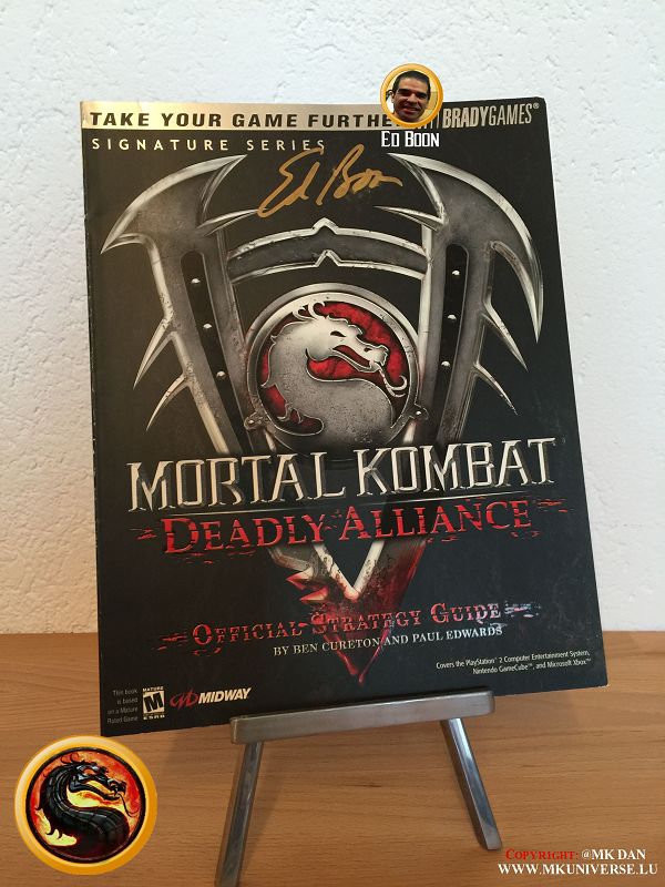 " MK & MK II ist "signiert" von: Ed Boon, John Tobias, John Vogel, Dan Forden, Carlos & Daniel Pesina, Richchard Divizio, Philip Ahn, John Parrish, Katalin Zamiar, Anthony Marquez, Brian Glynn, Ho-Sung Pak und Elisabeth Malecki."