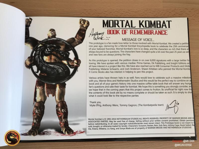 I wanna thanks the guys from MK Encyclopedia team to have showed the new version from the book of remembrance at the #KombatKon2016! It's looks absolutely awesome and I'm really honored to be part of this book and I wish seriously that your project get reality one day... that's a great book for collectors. please fans support this guys at Twitter/@encyclopediamk and please sign the Petition!!