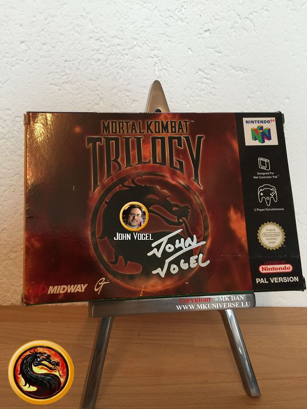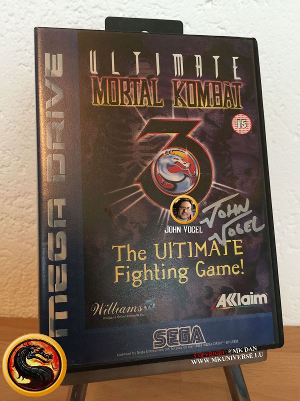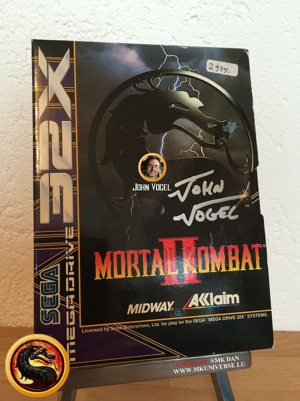 - Mortal Kombat (EU)*, Mortal Kombat (JP)* für Sega CD (16 Bit Spielkonsolen auf CD). Mortal Kombat (EU): Signiert von John Vogel.