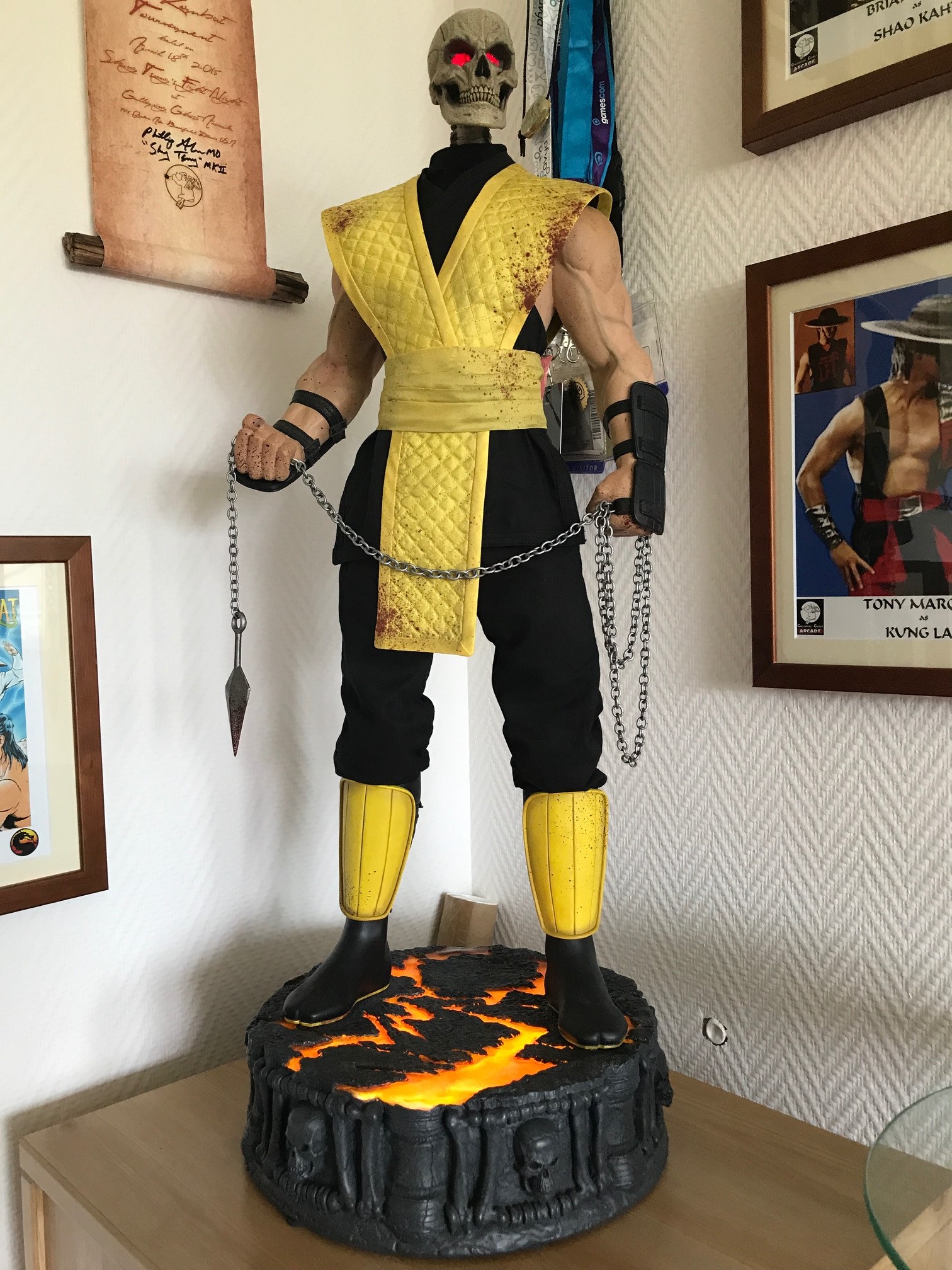 Mortal Kombat Deception Holz Figure (Scorpion), Das hier ist nicht original von Midway aber dafür ist es ein Totales einselstück, das heisst das gibt's nur einmal auf diesem Planet. ich habe den künstler selbst bei Ebay kennengelernt und der hat über 80 Stunde daran gearbeitet und das beste ist es würde aus einem Holzklotz bearbeitet nur das schwert ist in zwei teilen gemacht.