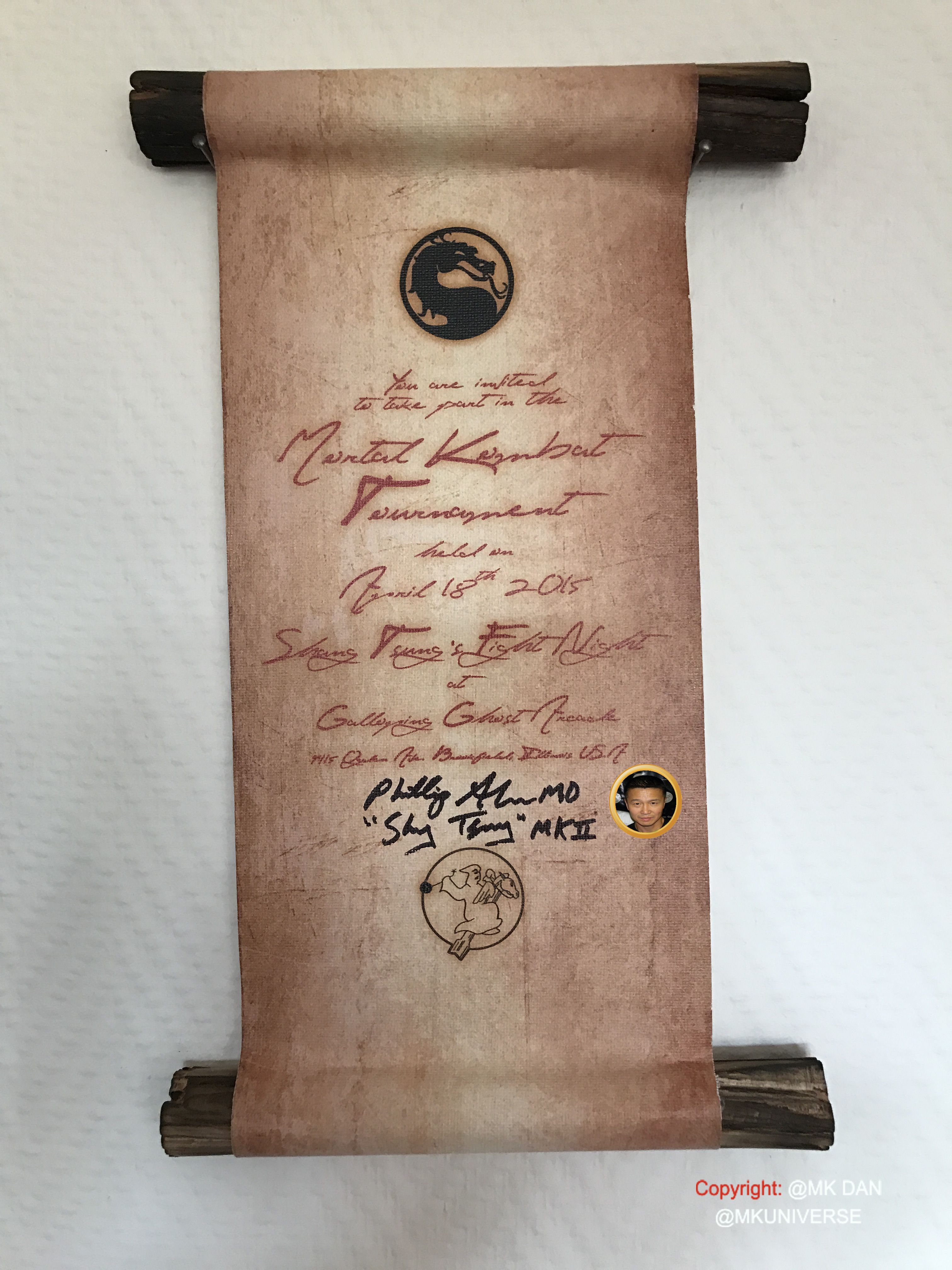 .Another big thanks goes to: Brian Glynn, Lia Montelongo, Daniel Pesina, Philip Ahn, John Parrish, Richard Divizio, Carlos Pesina, Sal Divita, Kerri Hoskins, Katalin Zamiar, Anthony Marquez, Ho-Sung Pak, John Turk and Josh Tsui, Chris Alexander and Elisabeth Malecki for this inoubliable moment at the Shang Tsung Fight Night event at Galloping Ghost Aracde in 2015 and Kombat Kon 2016 & 2017.