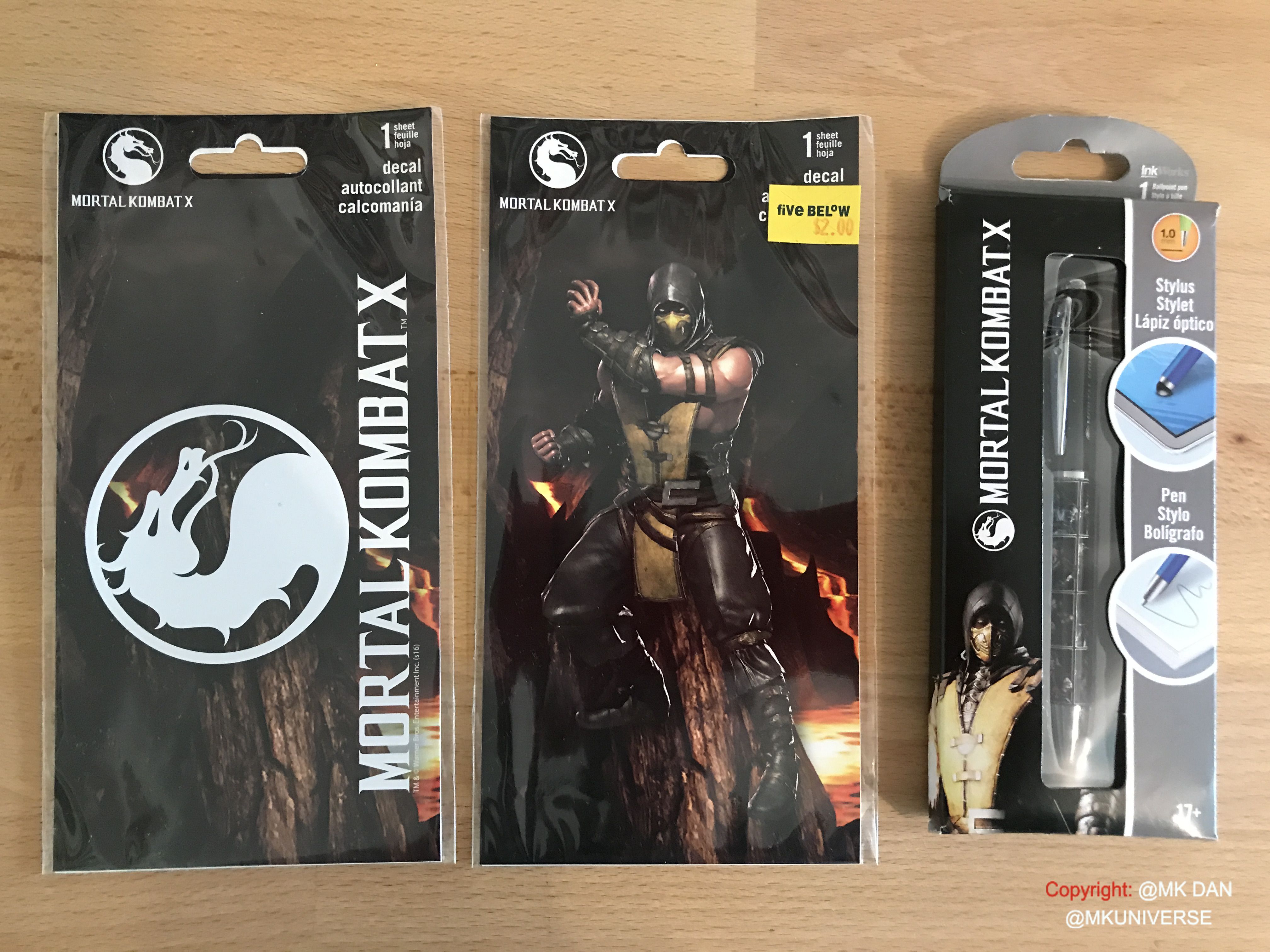 Mortal Kombat Classic, Mortal Kombat 3, Mortal Kombat: Deadly Alliance, Mortal Kombat: Shaolin Monks, Mortal Kombat: Armageddon, Mortal Kombat: Armageddon, Mortal Kombat Vs DC Universe, Mortal Kombat Vs DC Universe, Mortal Kombat 9, Mortal Kombat 9, Mortal Kombat X, Mortal Kombat X Gamescom, Mortal Kombat X mützen und ein Injustice T-Shirt.