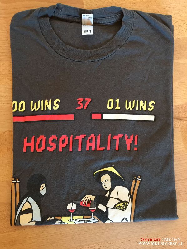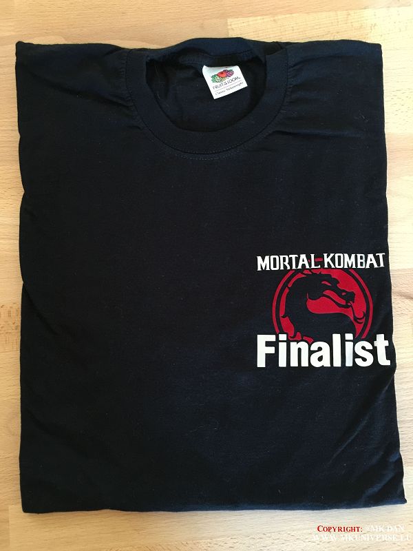 Diesen t-shirt habe ich beim eine Mortal Kombat 9 BENELUX Turnier in Belgien bekommen weil ich bei der Qualfikation den 1. platz erreicht hab und beim Turnier ein woche später habe ich leider nür den 4. platz gemacht. ich war als topfavorit gehandelt wurde aber leider habe ich mir den Turnier selbst in den sand gesetzt.